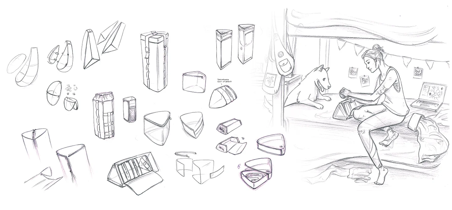 Early concepts for the bag relied heavily on modular elements. Detachable parts, structured stuff sacks, and hard cases were explored, along with various methods of assembling and opening the bag.